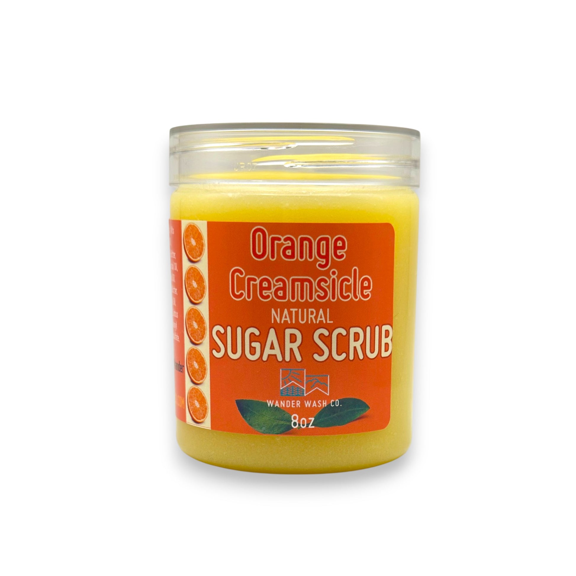 Bring back the nostalgia of sunny days and sweet treats with Orange Creamsicle. This all-natural sugar scrub polishes your skin with fine sugar crystals that melt as you massage—leaving behind smooth, glowing softness. Sweet Orange and Vanilla oils blend for a scent that’s pure happiness, while Mango and Shea butters drench your skin in lasting moisture.